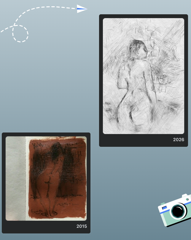 Y para empezar un nuevo año como este, no hay otro modo para hacerlo que dibujando. Y sentir la línea, el material y el soporte, como un todo indisoluble.